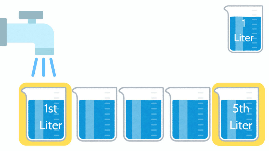At locations with lead service lines, sampling involves collecting the first and fifth liter of water from the tap after at least 6 hours of no water use. The first liter represents water from household fixtures, and the fifth liter is more likely to represent water from the lead service line.